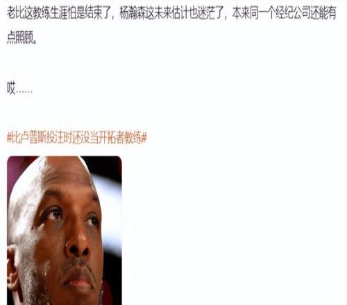 杨瀚森与比卢普斯都隶属于Klutch Sports Group,也就是里奇-保罗旗下的球员/教练员,外界猜测一旦杨瀚森没了比卢普斯这个主帅,他可能无法继续担任中锋位置上的二号人物。外界可能大大的小瞧了富保罗的能力。