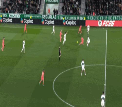 第28分钟,巴萨前场踢出眼花缭乱的配合,奥尔莫禁区外远射,击中横梁弹出。第29分钟,巴莱拉送出直塞,埃里克-加西亚造越位失败,阿尔瓦罗-罗德里格斯单刀推射破门,埃尔切扳平,1-1!